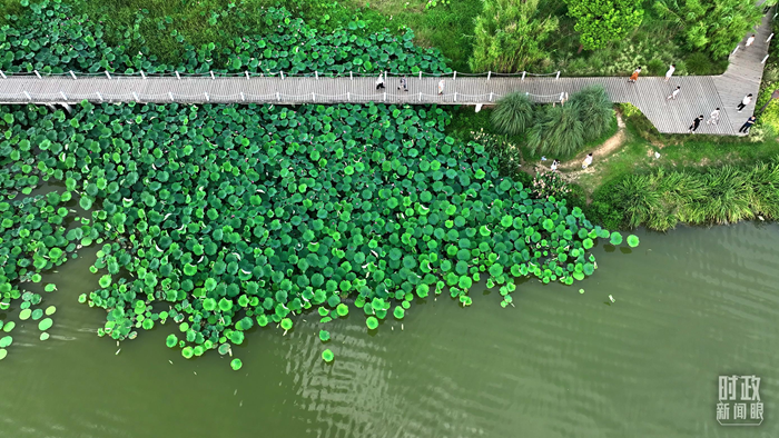 总书记说,生态公园建设要顺应自然,加强湿地生态系统的整体性保护和系统性修复,促进生态保护同生产生活相互融合,努力建设环境优美、绿色低碳、宜居宜游的生态城市。