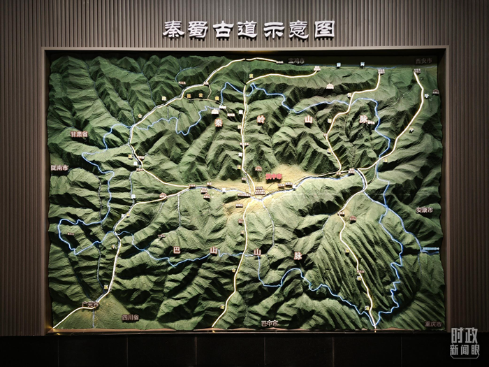 △汉中市博物馆内展示的秦蜀古道示意图。(总台央视记者黎兵拍摄)