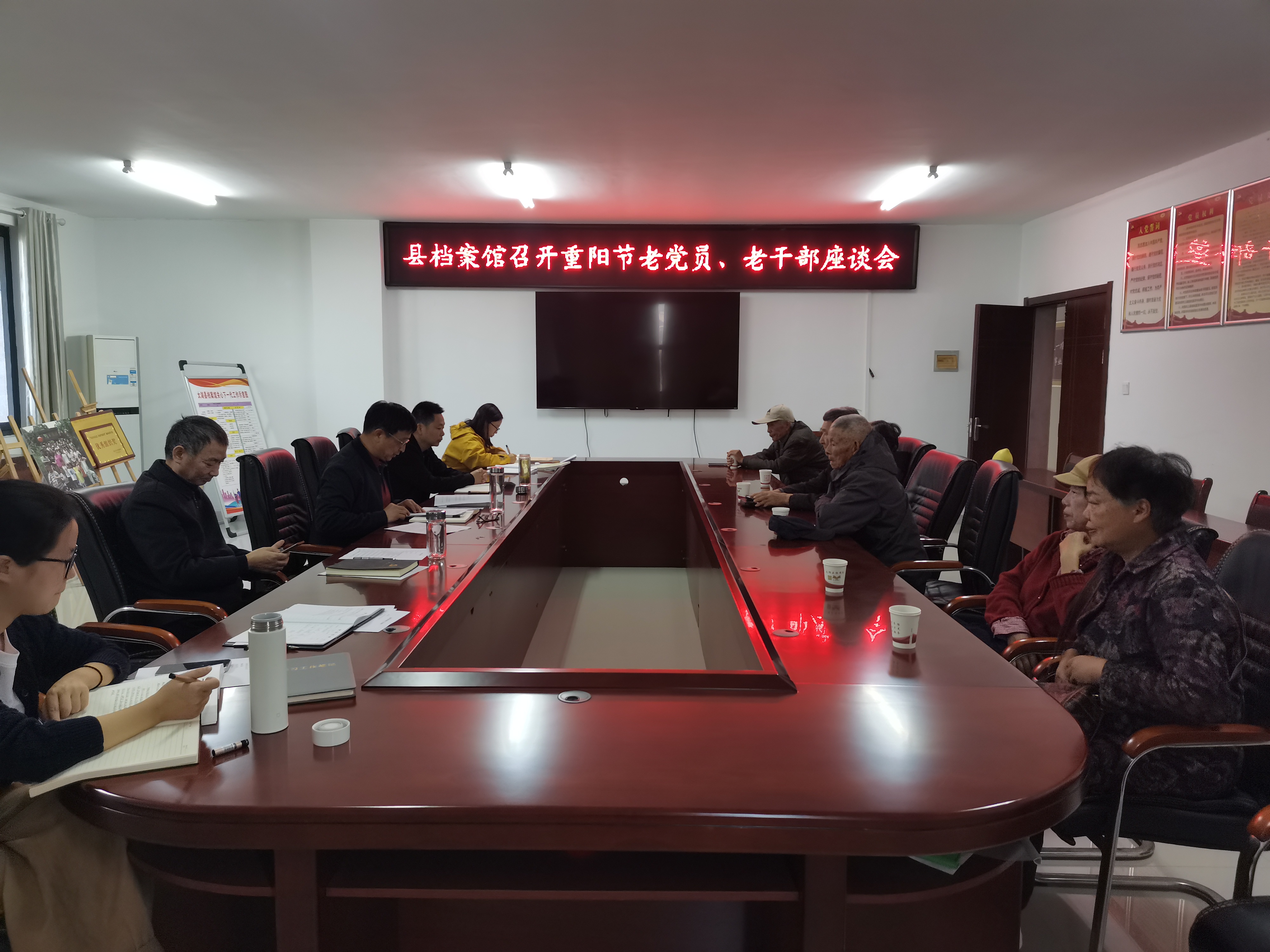 在重阳节来临之际,太湖县档案馆举办重阳节座谈会,邀请老党员、老干部欢聚一堂,共叙桑榆情、共话档案业,向他们致以节日的诚挚问候与崇高敬意。